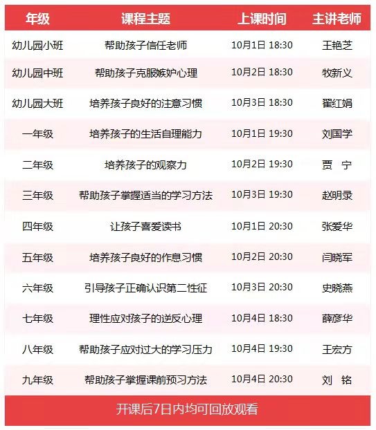 3. 课程播出后7天内均可回放观看,请各位家长安排好时间及时收看。