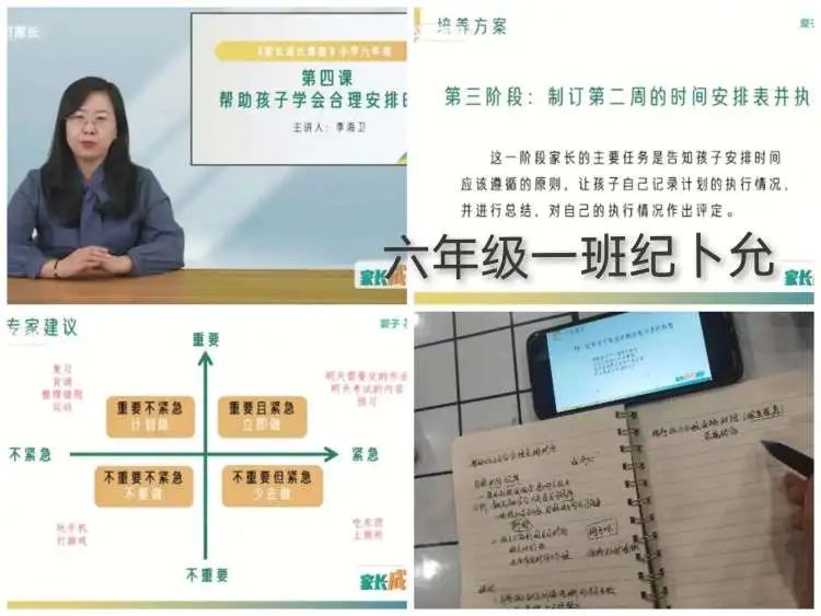 让孩子学会合理、自主地安排时间,不仅是保证孩子身心健康的重要条件,也是成才教育的一项基本训练。1月3日,六年级家长们共同学习家长学校第四课——《帮助孩子学会合理安排时间》。